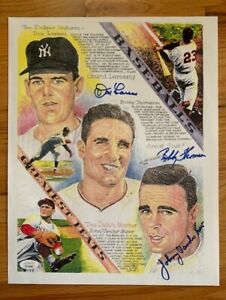 DON LARSEN+BOBBY THOMSON+VANDER MEER SIGNED 11×14 PRINT ALL 3 SIGNED JSA COLLECTIBLE MEMORABILIA
