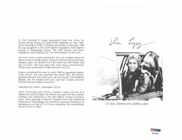 DONALD LOPEZ SIGNED 8X10 (D) PSA DNA AC41634 WWII ACE 5 KILLS COLLECTIBLE MEMORABILIA