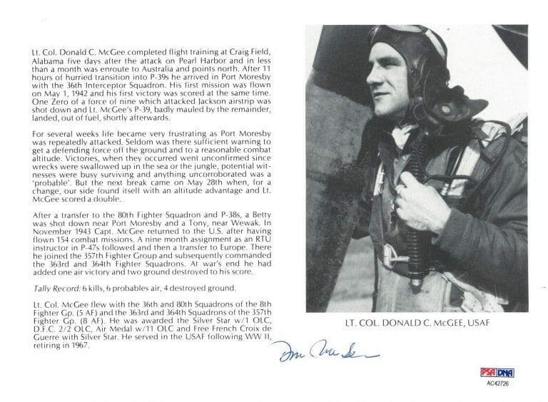 DONALD MCGEE SIGNED 8X10 (D) PSA DNA AC42726 WWII ACE 6 KILLS COLLECTIBLE MEMORABILIA