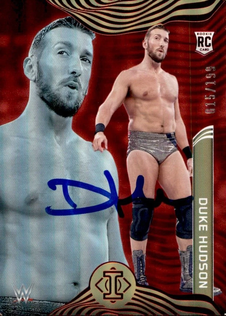 DUKE HUDSON SIGNED 2022 PANINI ILLUSIONS NXT WWE RED ROOKIE CARD #267 015/199 COLLECTIBLE MEMORABILIA