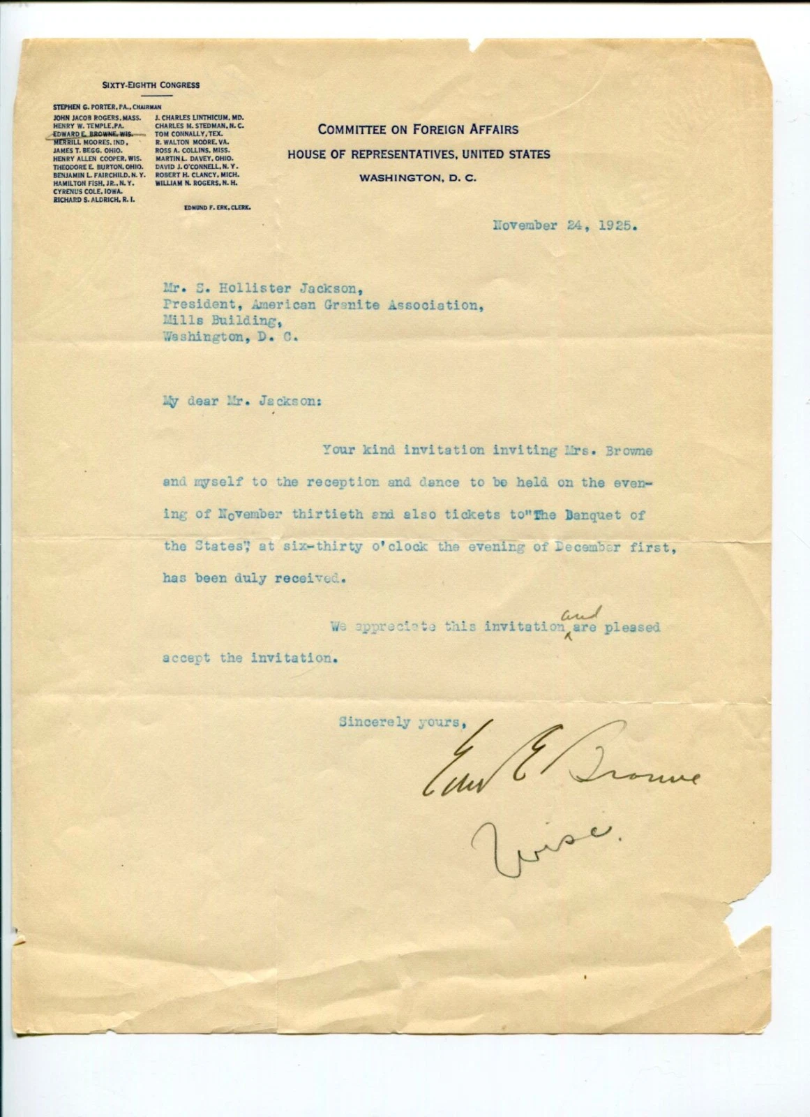 EDWARD E. BROWNE WISCONSIN US REPRESENTATIVE CONGRESS SIGNED AUTOGRAPH TSL COLLECTIBLE MEMORABILIA