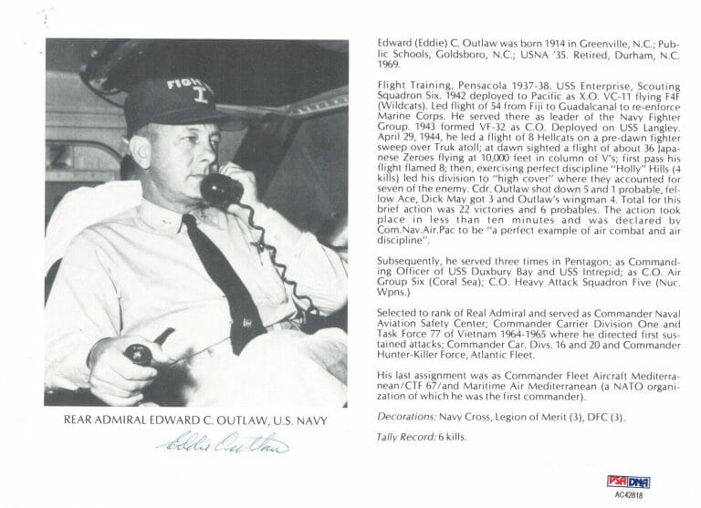 EDWARD OUTLAW SIGNED 8X10 (D) PSA DNA AC42818 WWII ACE 6 KILLS COLLECTIBLE MEMORABILIA