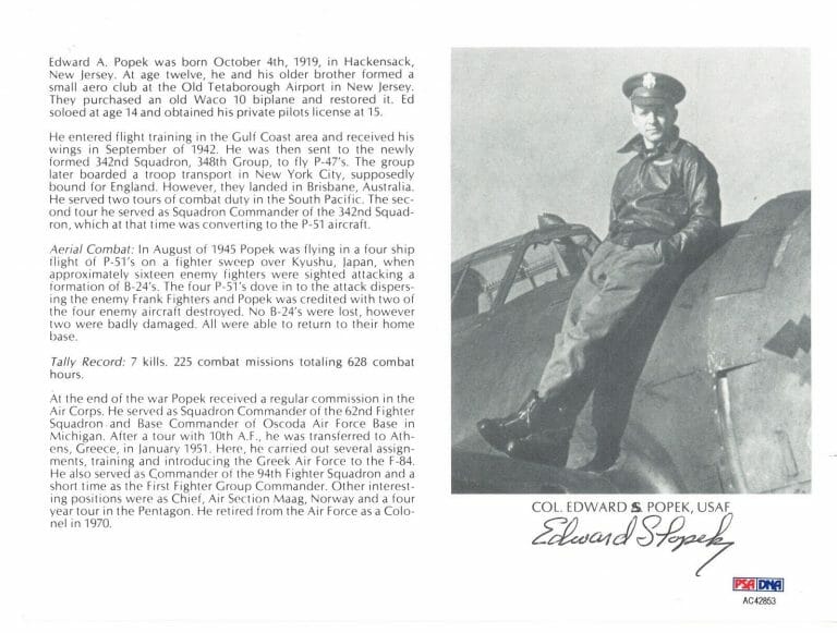 EDWARD POPEK SIGNED 8X10 (D) PSA DNA AC42853 WWII ACE 7 KILLS COLLECTIBLE MEMORABILIA