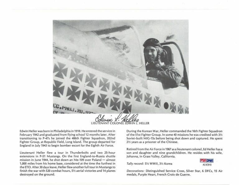 EDWIN HELLER SIGNED 8X10 (D) PSA DNA AC42919 WWII ACE 5.5V COLLECTIBLE MEMORABILIA