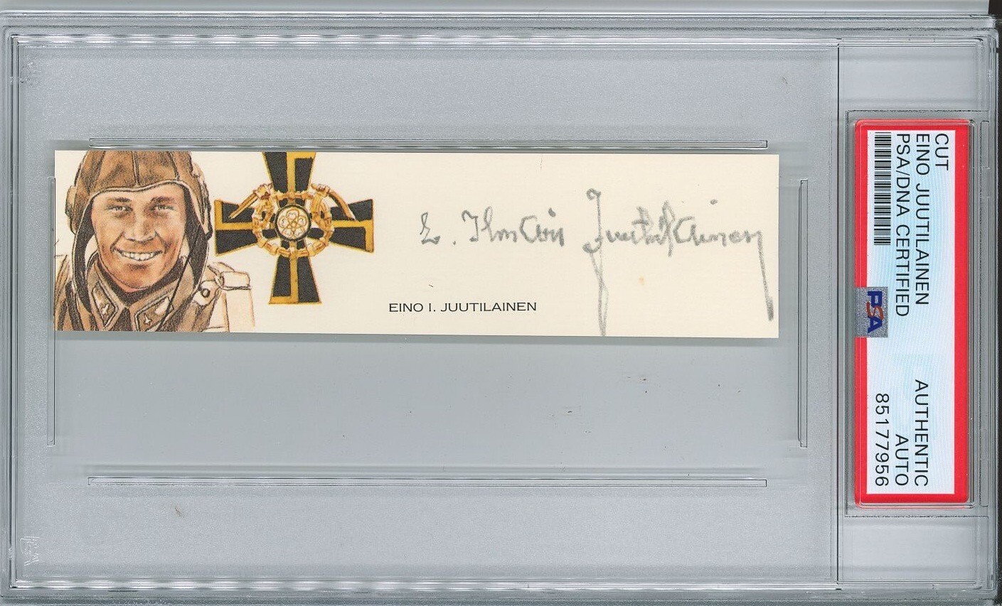 EINO JUUTILAINEN SIGNED CUT SIGNATURE PSA DNA 85177956 (D) WWII ACE COLLECTIBLE MEMORABILIA