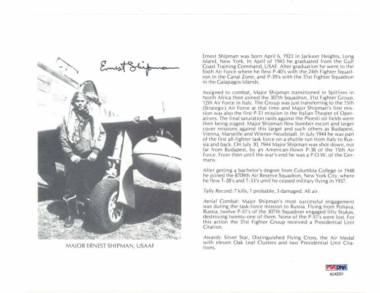 ERNEST SHIPMAN SIGNED 8X10 (D) PSA DNA AC42331 WWII ACE 7 KILLS COLLECTIBLE MEMORABILIA
