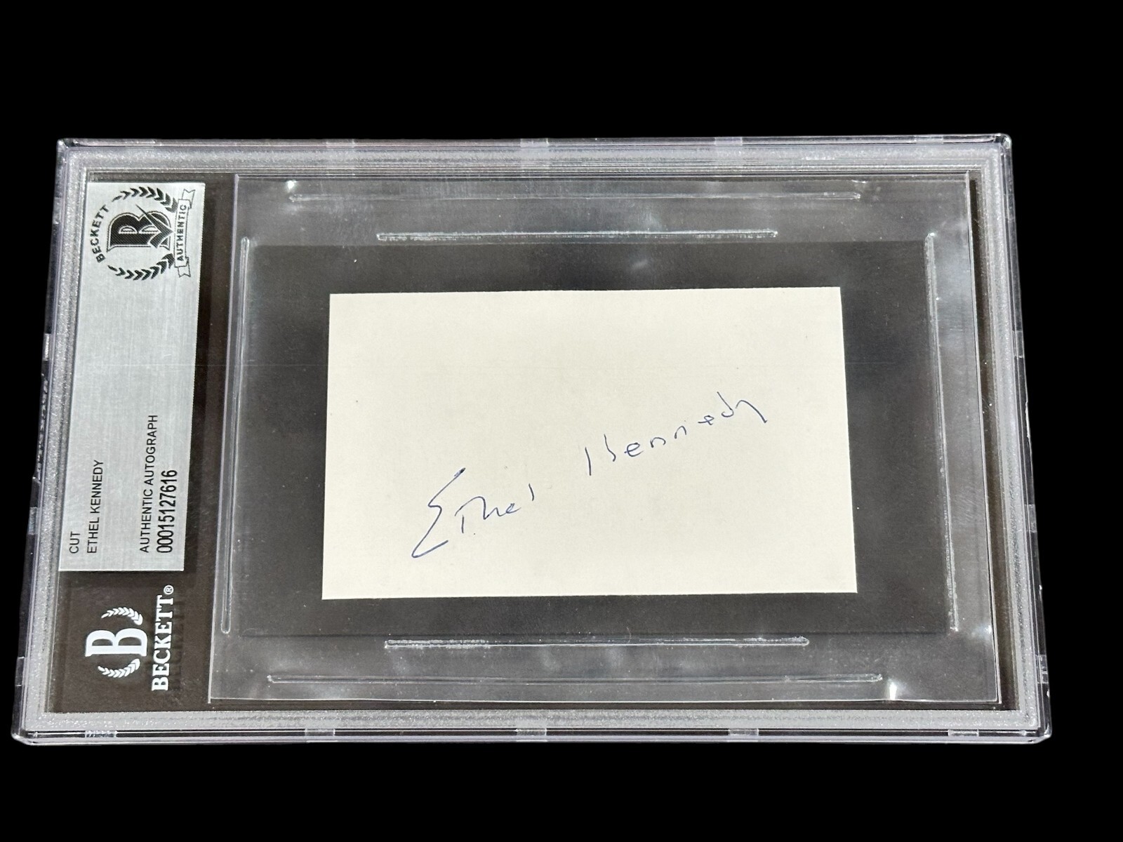 ETHEL KENNEDY WIFE ROBERT F. KENNEDY RFK RARE SIGNED AUTOGRAPH BECKETT BAS SLAB COLLECTIBLE MEMORABILIA
