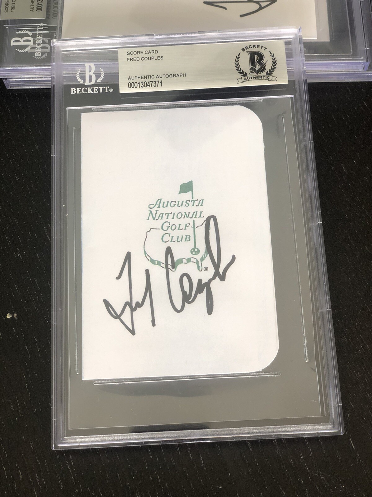 FRED COUPLES HAND SIGNED MASTERS SCORECARD SLABBED BECKETT BAS #5 COLLECTIBLE MEMORABILIA