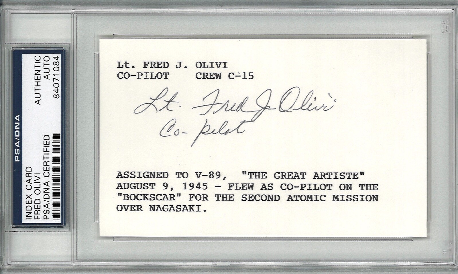 FRED OLIVI SIGNED INDEX CARD PSA DNA 84071084 (D) BOCKSCAR GREAT ARTISTE 8/9/45 COLLECTIBLE MEMORABILIA