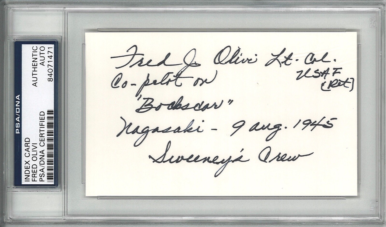 FRED OLIVI SIGNED INDEX CARD PSA DNA 84071471 (D) BOCKSCAR GREAT ARTISTE 8/9/45 COLLECTIBLE MEMORABILIA