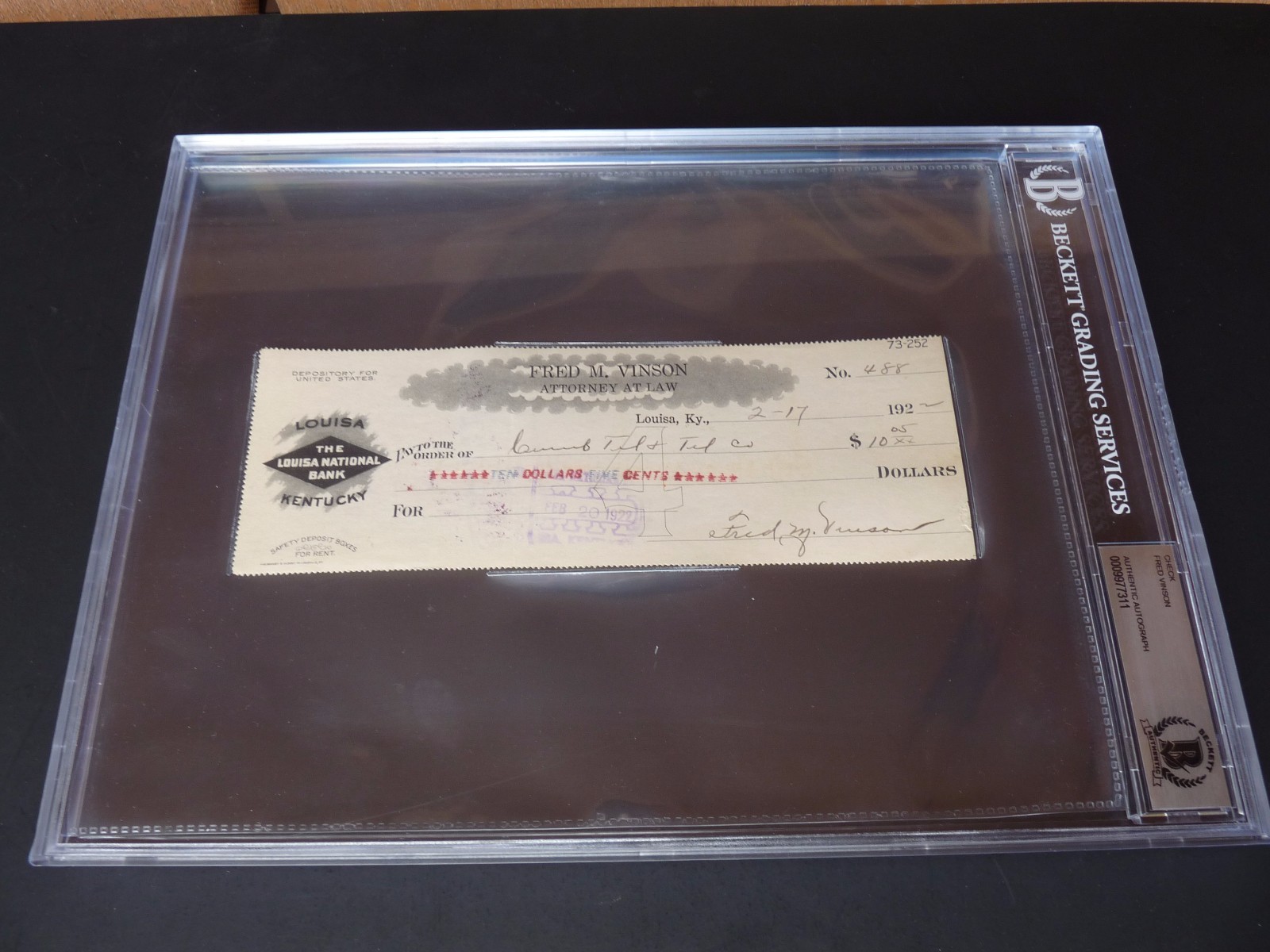 FRED VINSON CHIEF JUSTICE SUPREME COURT SIGNED CHECK BECKETT CERTIFIED SLABBED 1 COLLECTIBLE MEMORABILIA
