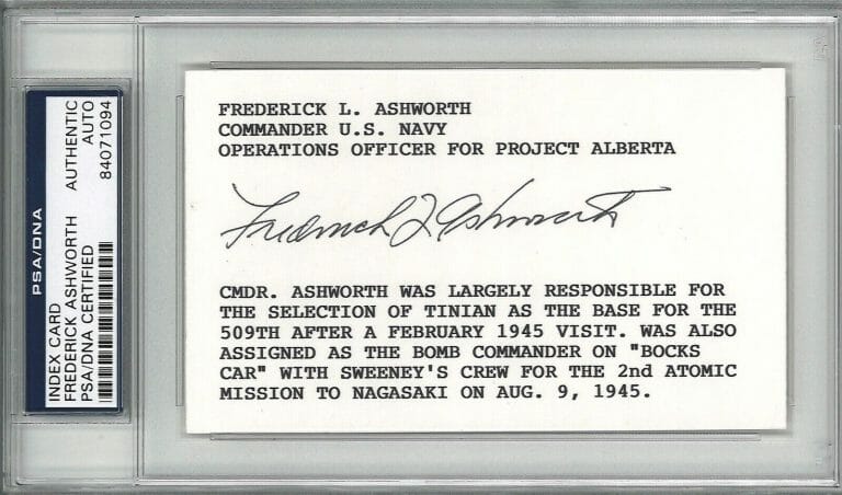 FREDERICK ASHWORTH SIGNED INDEX CARD PSA DNA 84071094 (D) PROJECT ALBERTA COLLECTIBLE MEMORABILIA