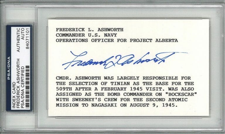 FREDERICK ASHWORTH SIGNED INDEX CARD PSA DNA 84071101 (D) PROJECT ALBERTA COLLECTIBLE MEMORABILIA