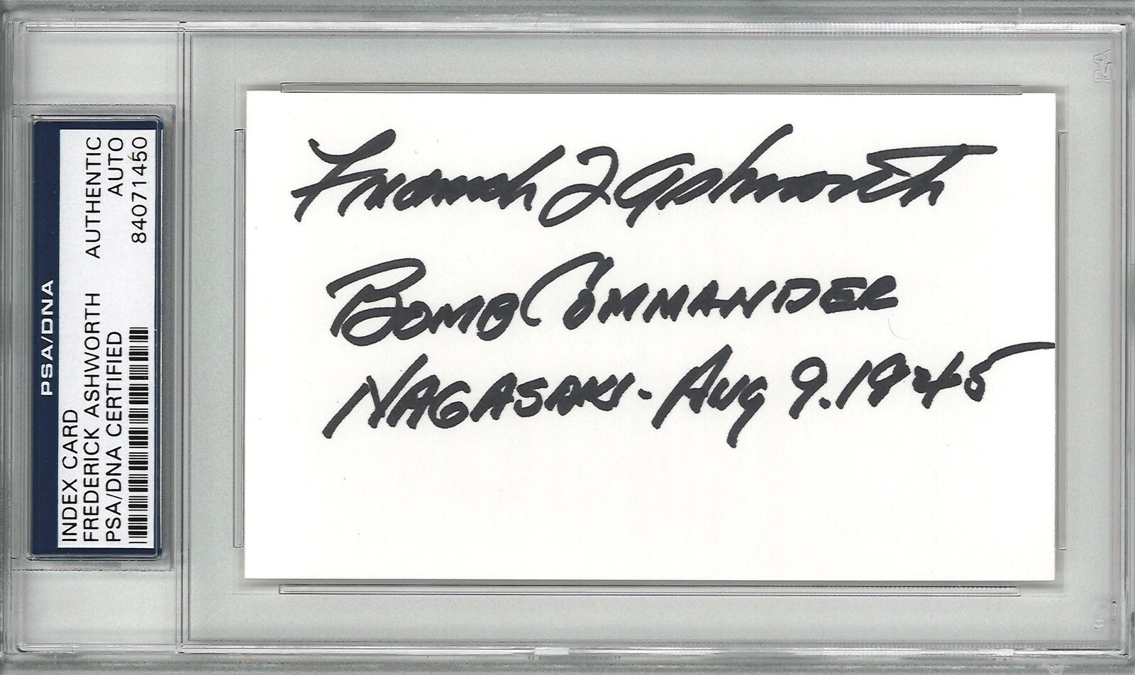 FREDERICK ASHWORTH SIGNED INDEX CARD PSA DNA 84071450 (D) PROJECT ALBERTA COLLECTIBLE MEMORABILIA