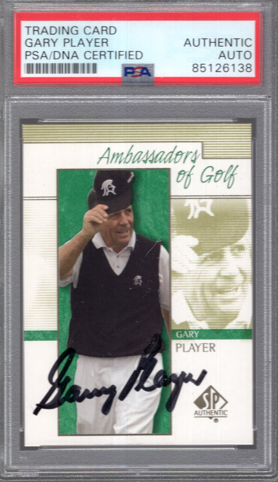 GARY PLAYER HAND SIGNED 2001 UPPER DECK SP TRADING CARD PSA SLABBED COLLECTIBLE MEMORABILIA