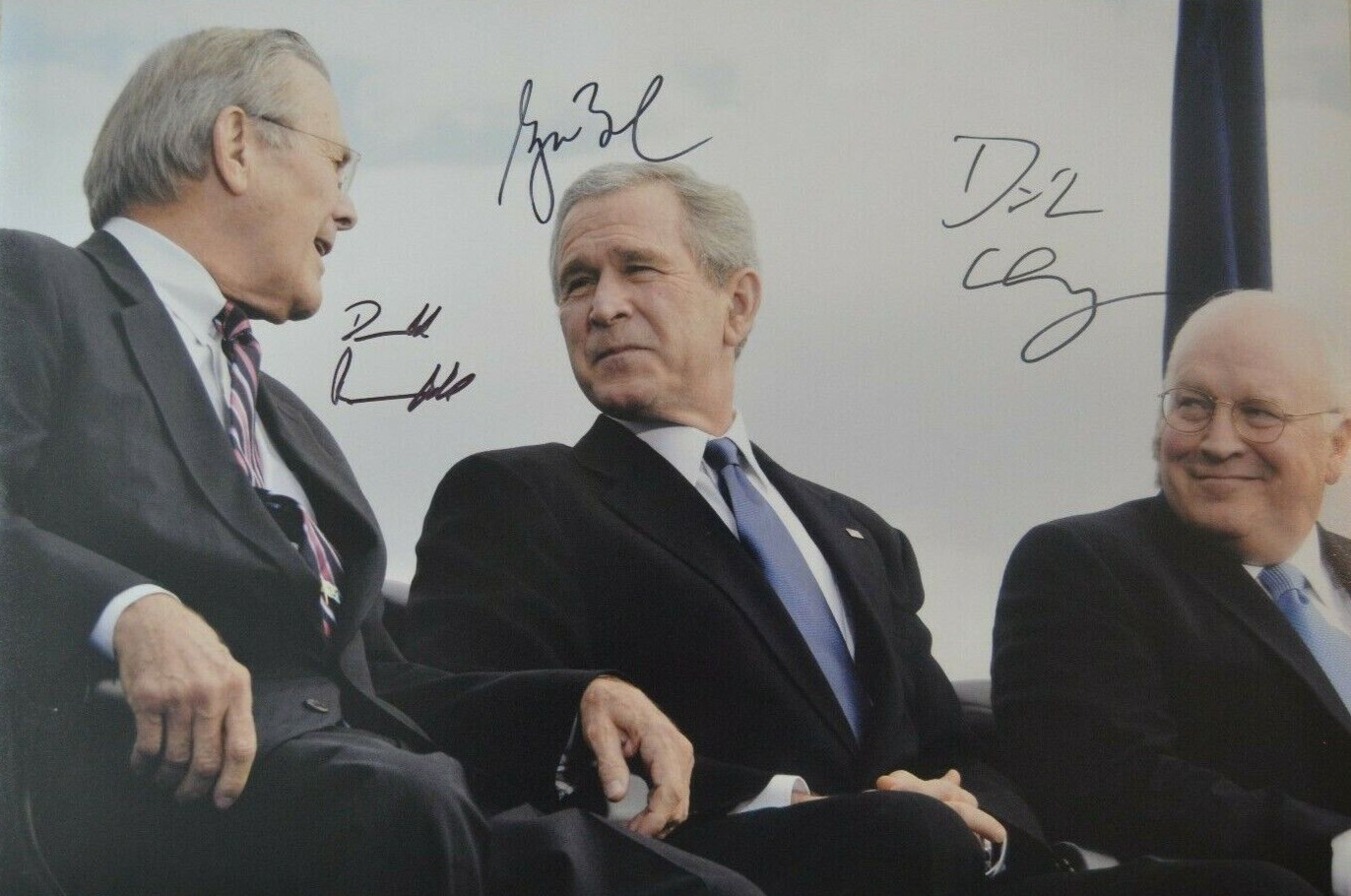 GEORGE W. BUSH, DICK CHENEY, DONALD RUMSFELD SIGNED 12×18 PHOTO JSA LOA #Y81492 COLLECTIBLE MEMORABILIA