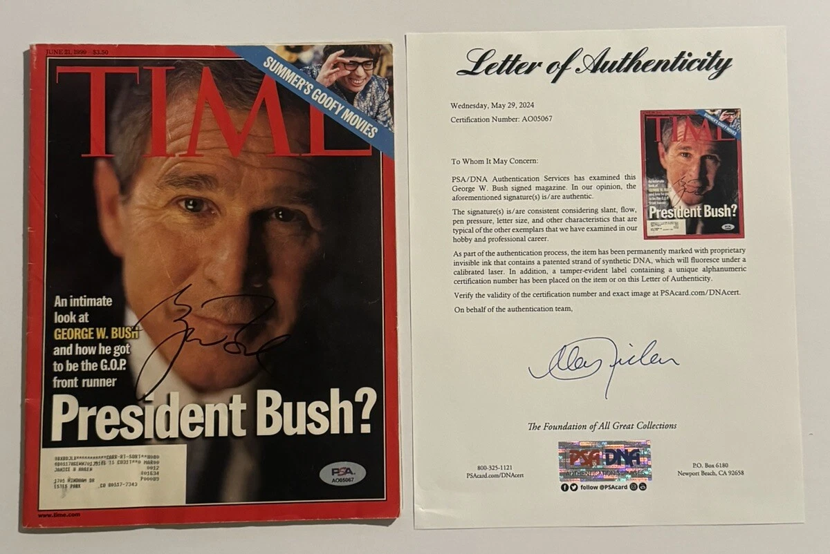 GEORGE W BUSH SIGNED TIME MAGAZINE AUTOGRAPH US PRESIDENT PSA FULL LETTER COA COLLECTIBLE MEMORABILIA
