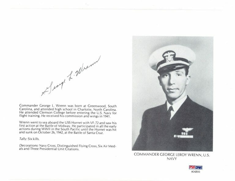 GEORGE WRENN SIGNED 8X10 (D) PSA DNA AC42513 WWII ACE 6 KILLS COLLECTIBLE MEMORABILIA