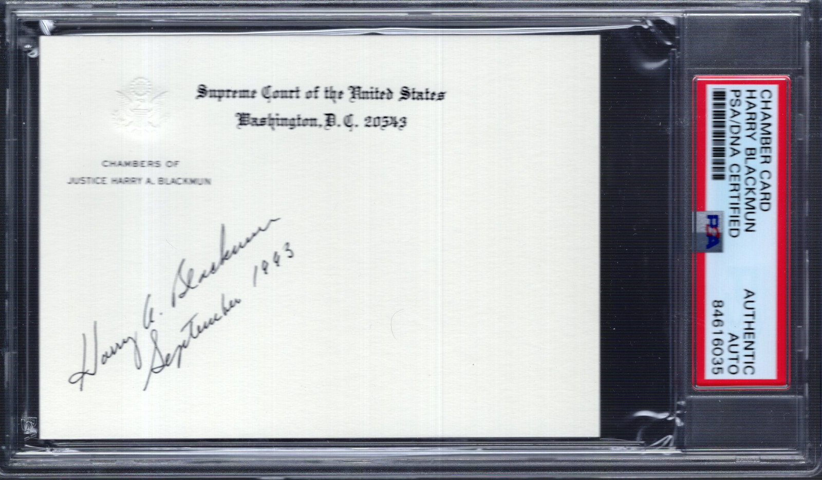 HARRY BLACKMUN SIGNED SUPREME COURT CHAMBERS CARD RARE JSA+PSA SLABBED COLLECTIBLE MEMORABILIA