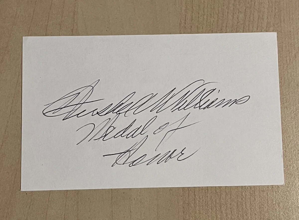 HERSHEL WILLIAMS SIGNED INDEX CARD AUTOGRAPHED WORLD WAR 2 MEDAL OF HONOR COA COLLECTIBLE MEMORABILIA