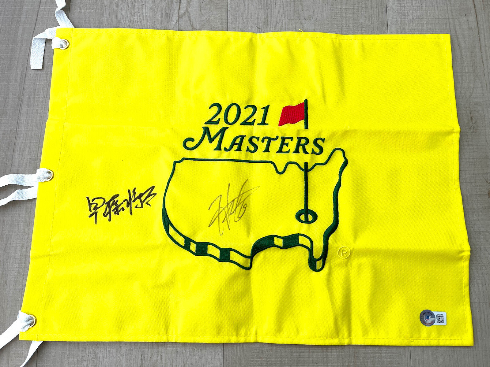 HIDEKI MATSUYAMA & SHOTO HAYAFUJI HAND SIGNED 2021 MASTERS FLAG BECKETT CERT COLLECTIBLE MEMORABILIA
