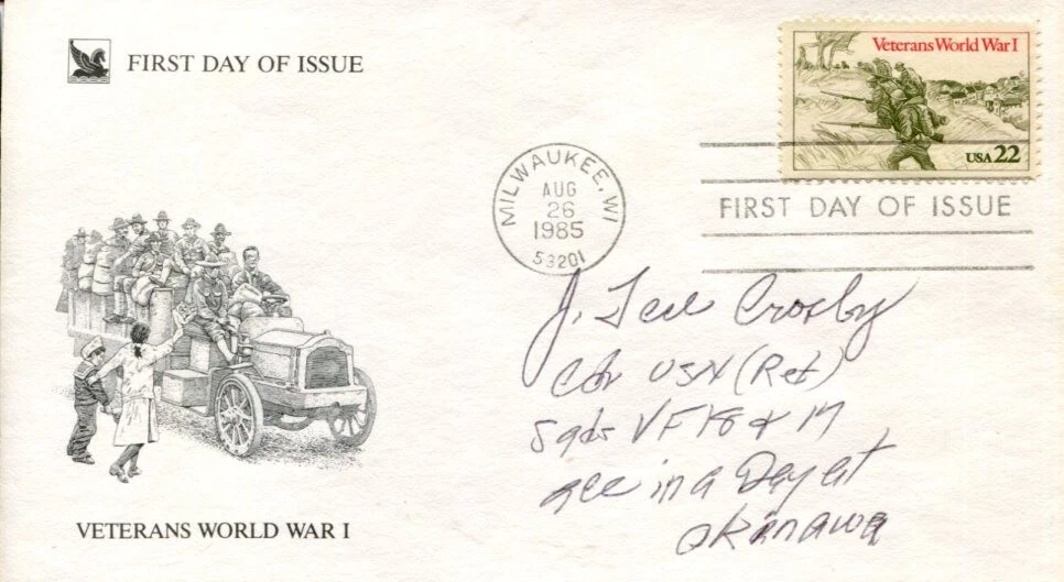J TED CROSBY WWII WAR USN NAVY FIGHTER ACE SIGNED AUTOGRAPH FDC COLLECTIBLE MEMORABILIA