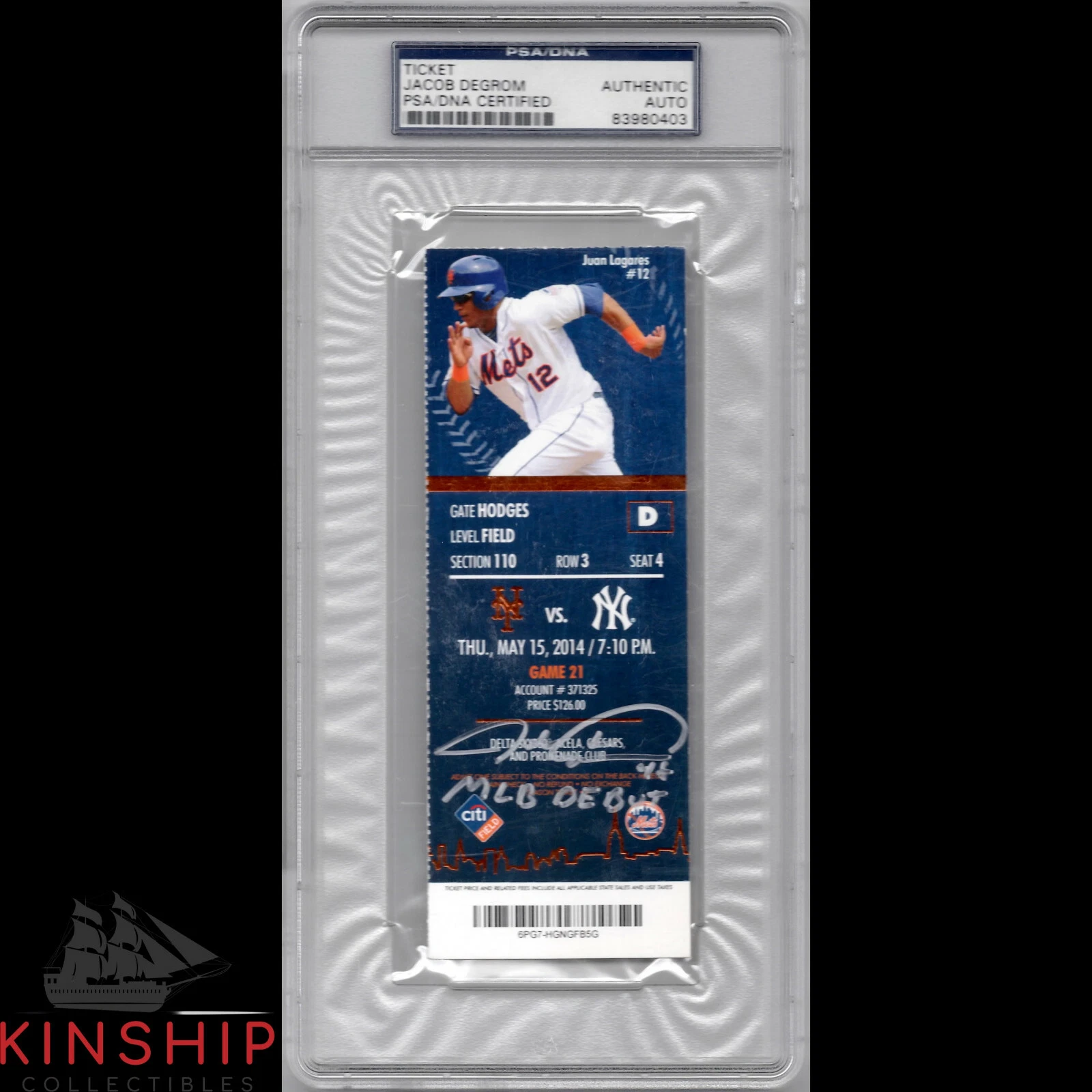 JACOB DEGROM SIGNED MLB DEBUT TICKET PSA DNA SLABBED AUTO METS INSCRIBED C831 COLLECTIBLE MEMORABILIA