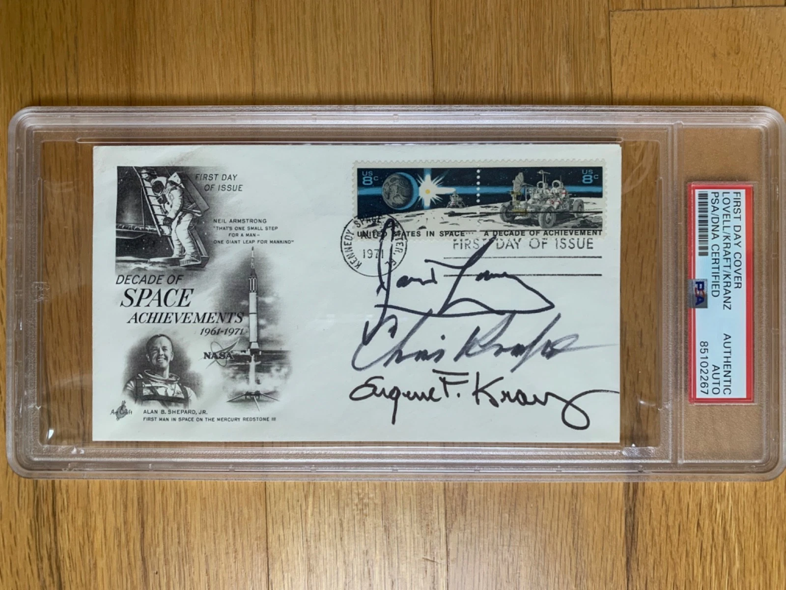 JAMES LOVELL+KRANZ+KRAFT SIGNED 1971 FIRST DAY COVER RARE JSA+PSA SLAB COLLECTIBLE MEMORABILIA