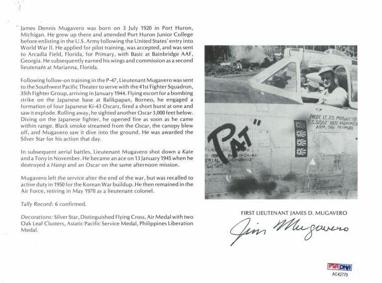 JAMES MUGAVERO SIGNED 8X10 (D) PSA DNA AC42779 WWII ACE 6 KILLS COLLECTIBLE MEMORABILIA