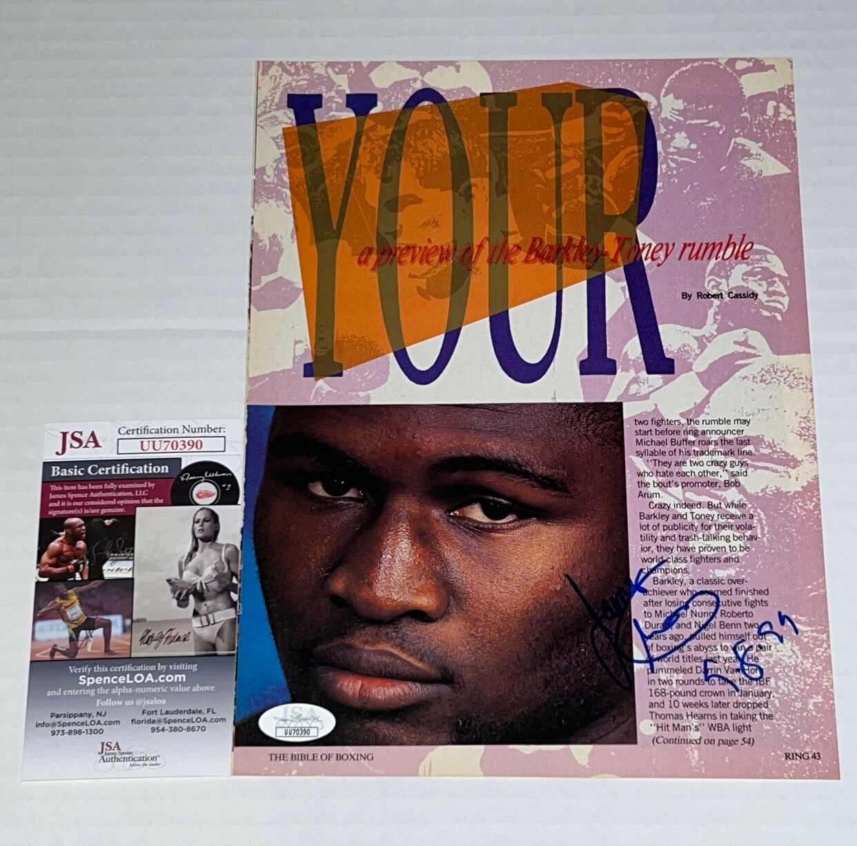 JAMES TONEY LIGHTS OUT SIGNED MAGAZINE PAGE BOXING CHAMP AUTOGRAPHED JSA COLLECTIBLE MEMORABILIA