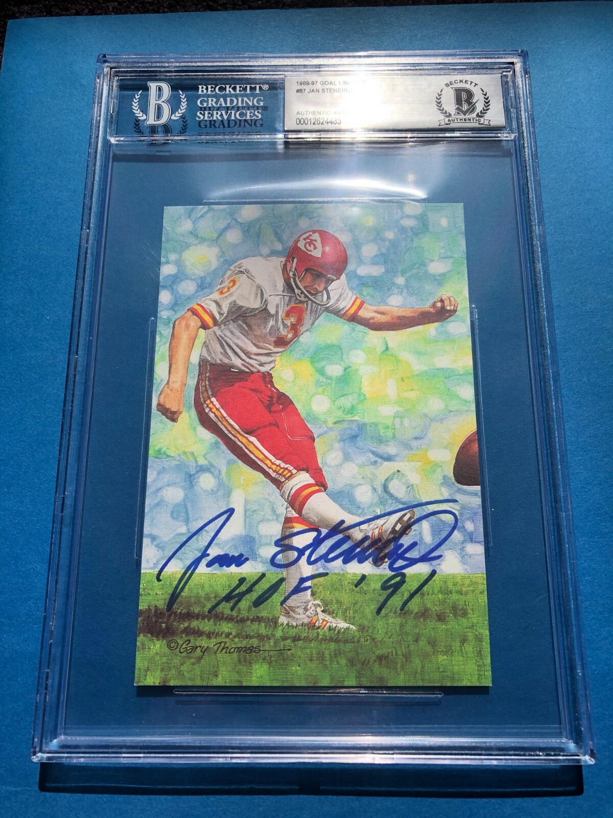JAN STENERUD SIGNED GOAL LINE ART CARD #87 BECKETT BAS & HOF INSCRIPTION COLLECTIBLE MEMORABILIA
