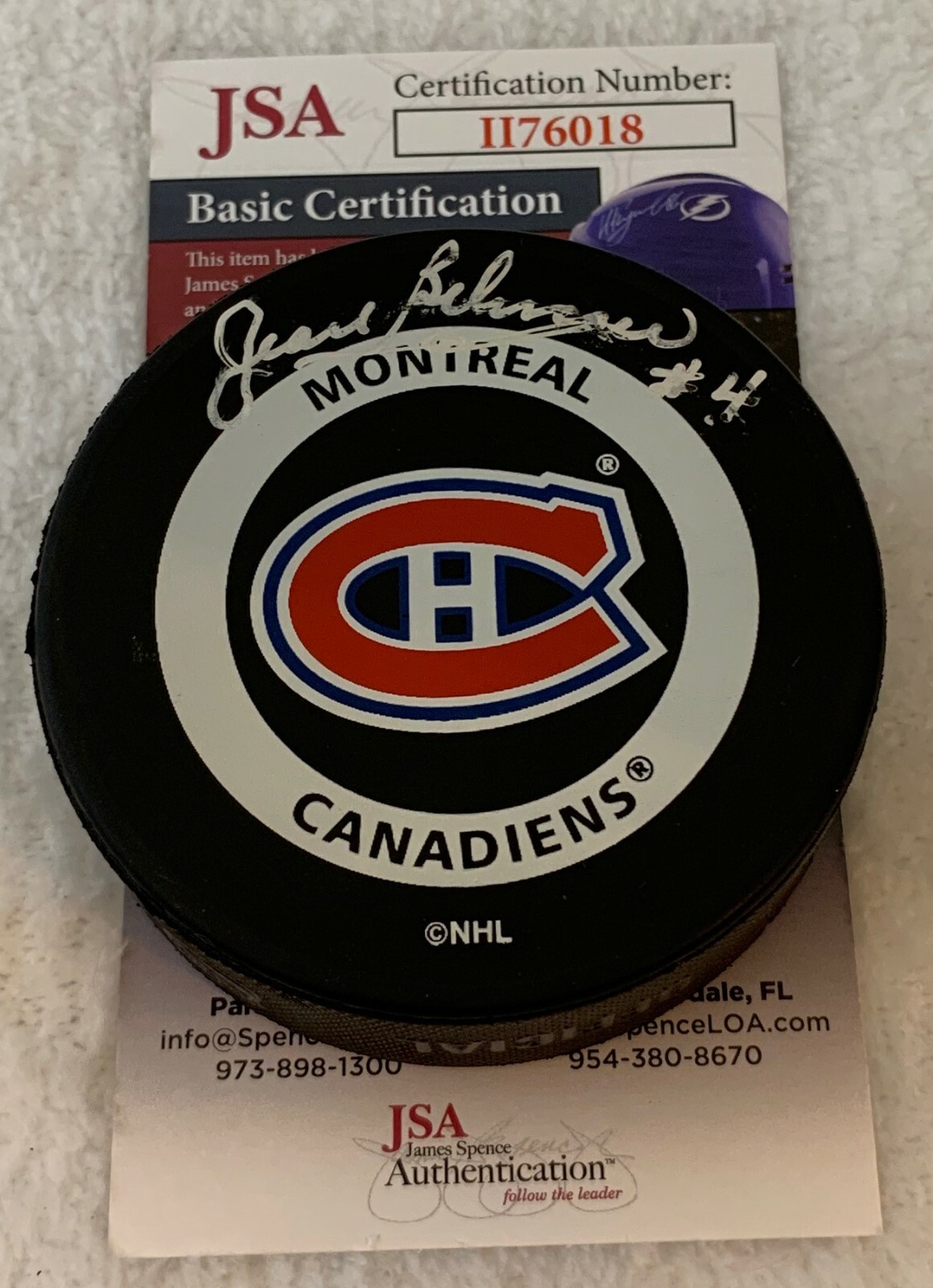 JEAN BELIVEAU SIGNED MONTREAL CANADIENS OFFICIAL GAME PUCK AUTOGRAPHED JSA COLLECTIBLE MEMORABILIA
