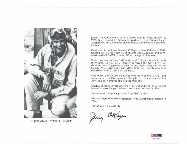 JEREMIAH O’KEEFE SIGNED 8X10 (D) PSA DNA AC42801 WWII ACE 7 KILLS COLLECTIBLE MEMORABILIA