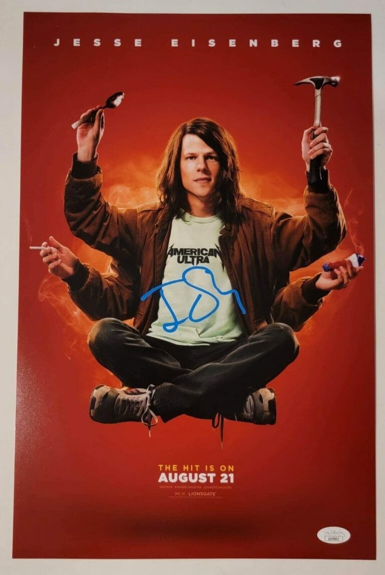 JESSE EISENBERG REAL HAND SIGNED 11×17 AMERICAN ULTRA MOVIE POSTER JSA COA COLLECTIBLE MEMORABILIA