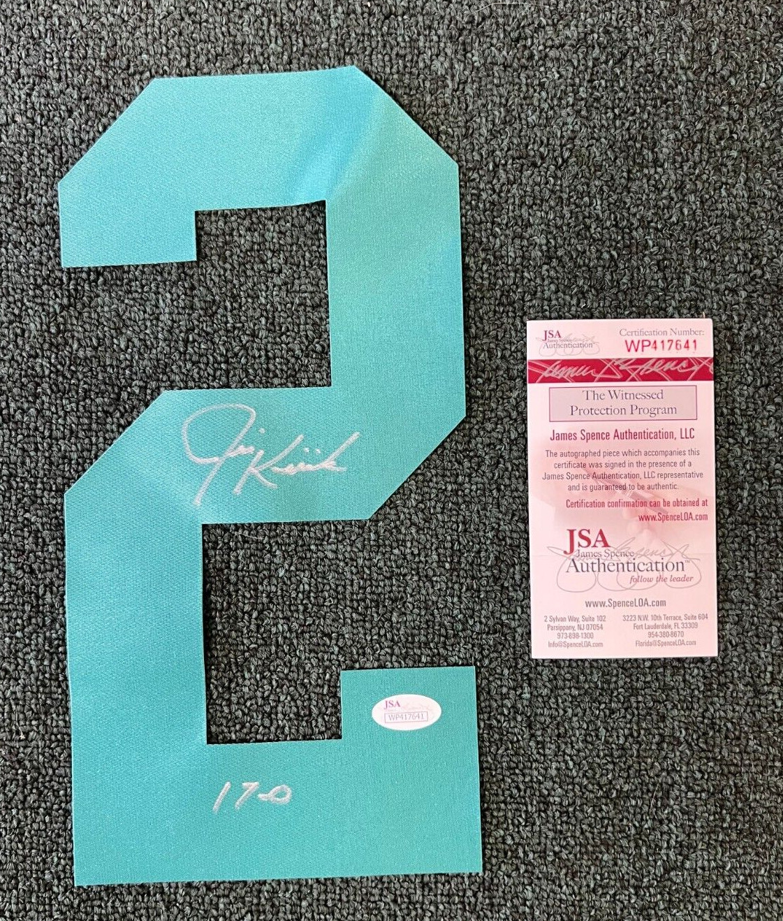 JIM KIICK MIAMI DOLPHINS 17-0 SIGNED AUTOGRAPHED #2 JERSEY NUMBER JSA COA ** COLLECTIBLE MEMORABILIA