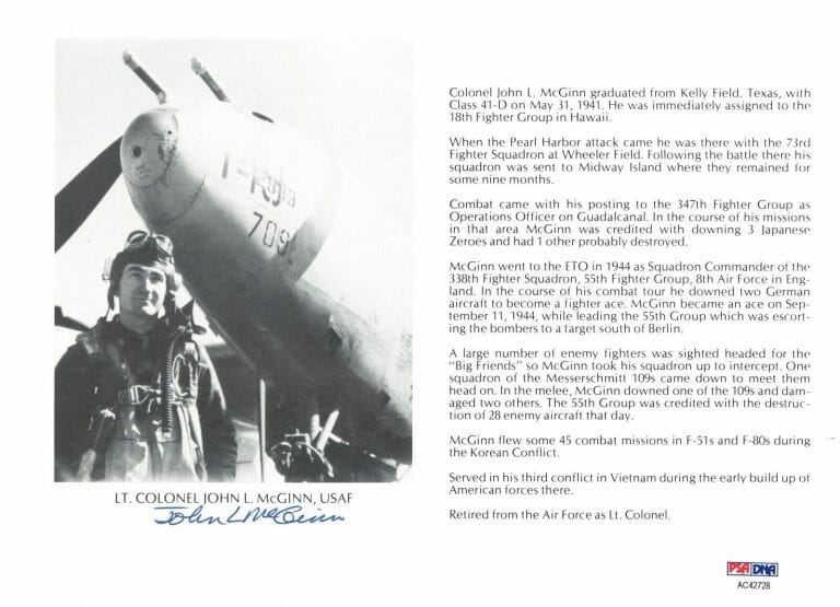 JOHN MCGINN SIGNED 8X10 (D) PSA DNA AC42728 WWII ACE 5 KILLS COLLECTIBLE MEMORABILIA