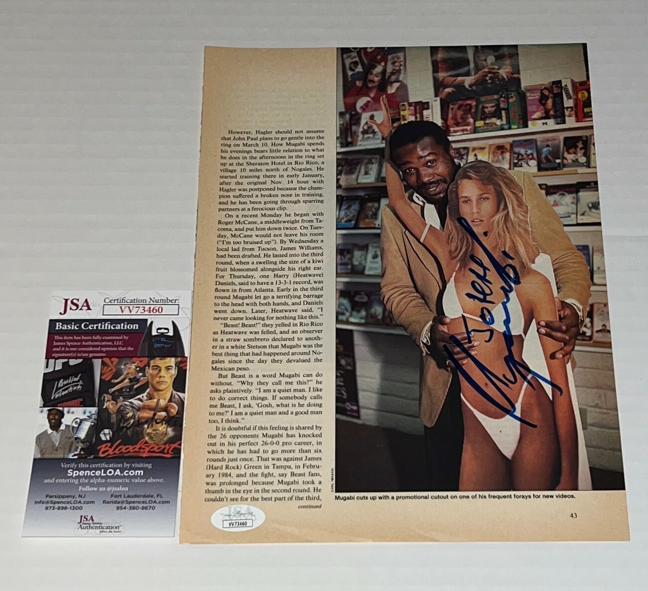 JOHN MUGABI THE BEAST SIGNED BOXING MAGAZINE PAGE AUTOGRAPHED JSA COLLECTIBLE MEMORABILIA