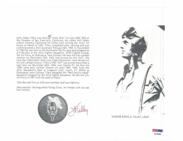 JOHN TILLEY SIGNED 8X10 (D) PSA DNA AC42406 WWII ACE 5 KILLS COLLECTIBLE MEMORABILIA