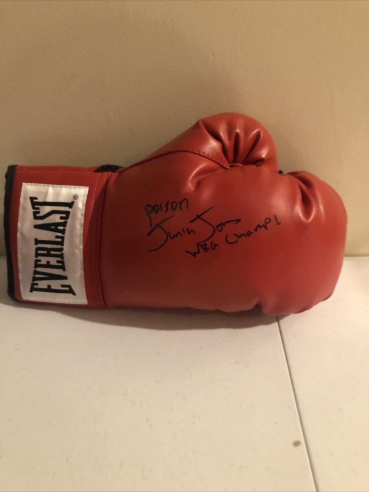 JUNIOR POISON JONES SIGNED AUTOGRAPH EVERLAST BOXING GLOVE COA WBA CHAMP COLLECTIBLE MEMORABILIA