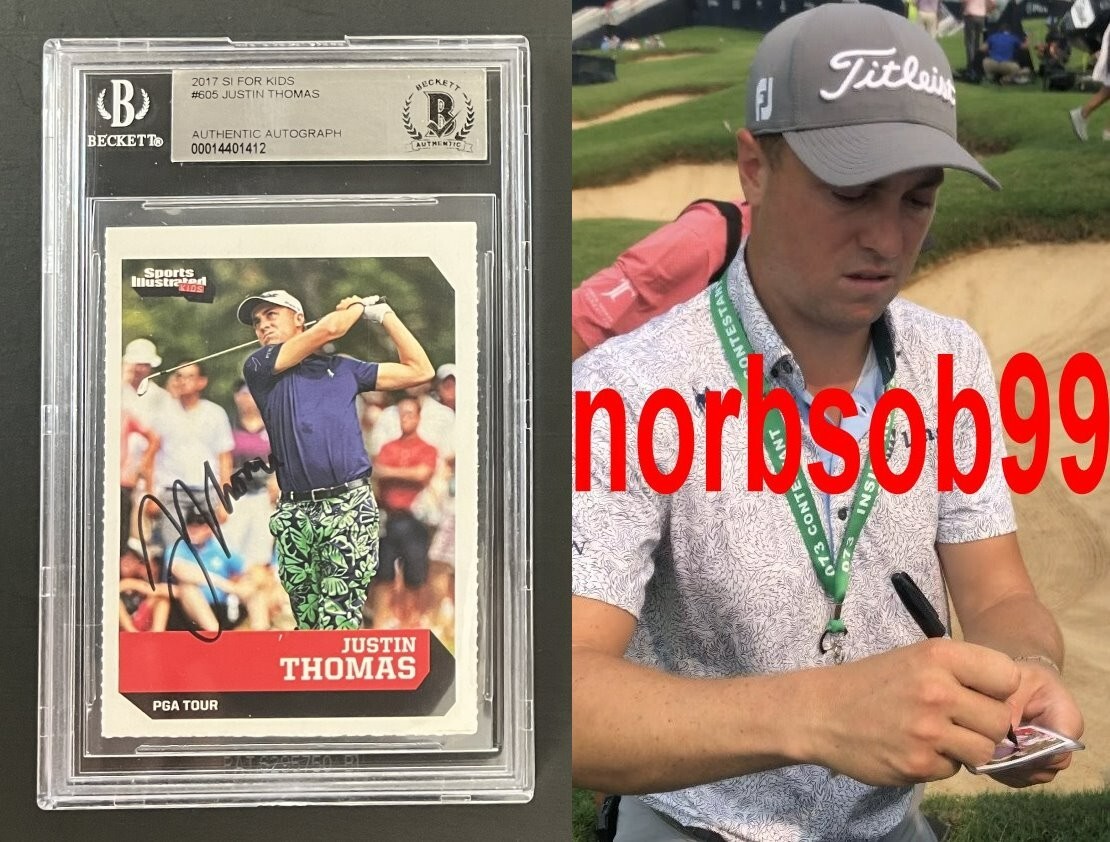 JUSTIN THOMAS SIGNED 2017 SI FOR KIDS ROOKIE CARD W/EXACT PROOF BECKETT BAS SLAB COLLECTIBLE MEMORABILIA