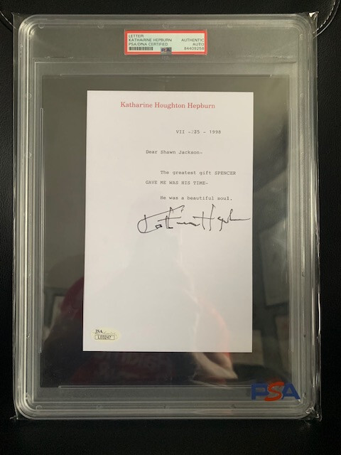 KATHARINE HEPBURN SIGNED LETTER ON LETTERHEAD SPENCER TRACY CONTENT JSA/PSA COLLECTIBLE MEMORABILIA