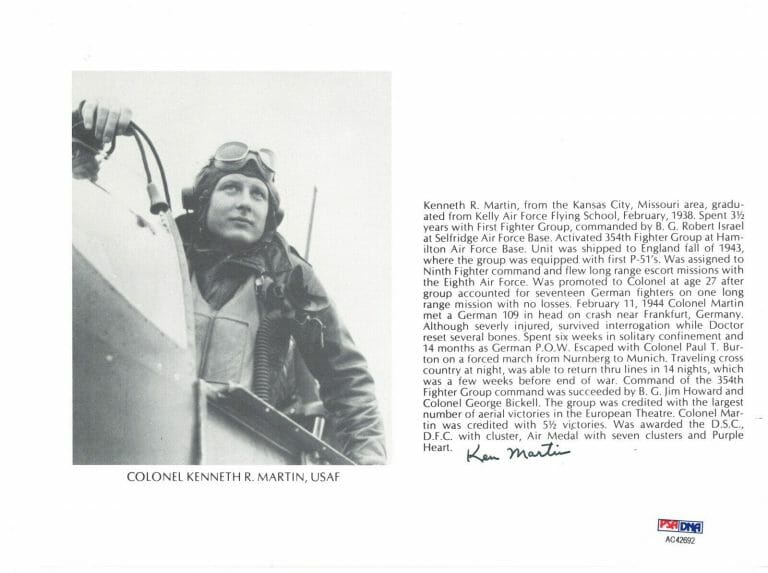 KENNETH MARTIN SIGNED 8X10 (D) PSA DNA AC42692 WWII ACE 5.5 KILLS COLLECTIBLE MEMORABILIA