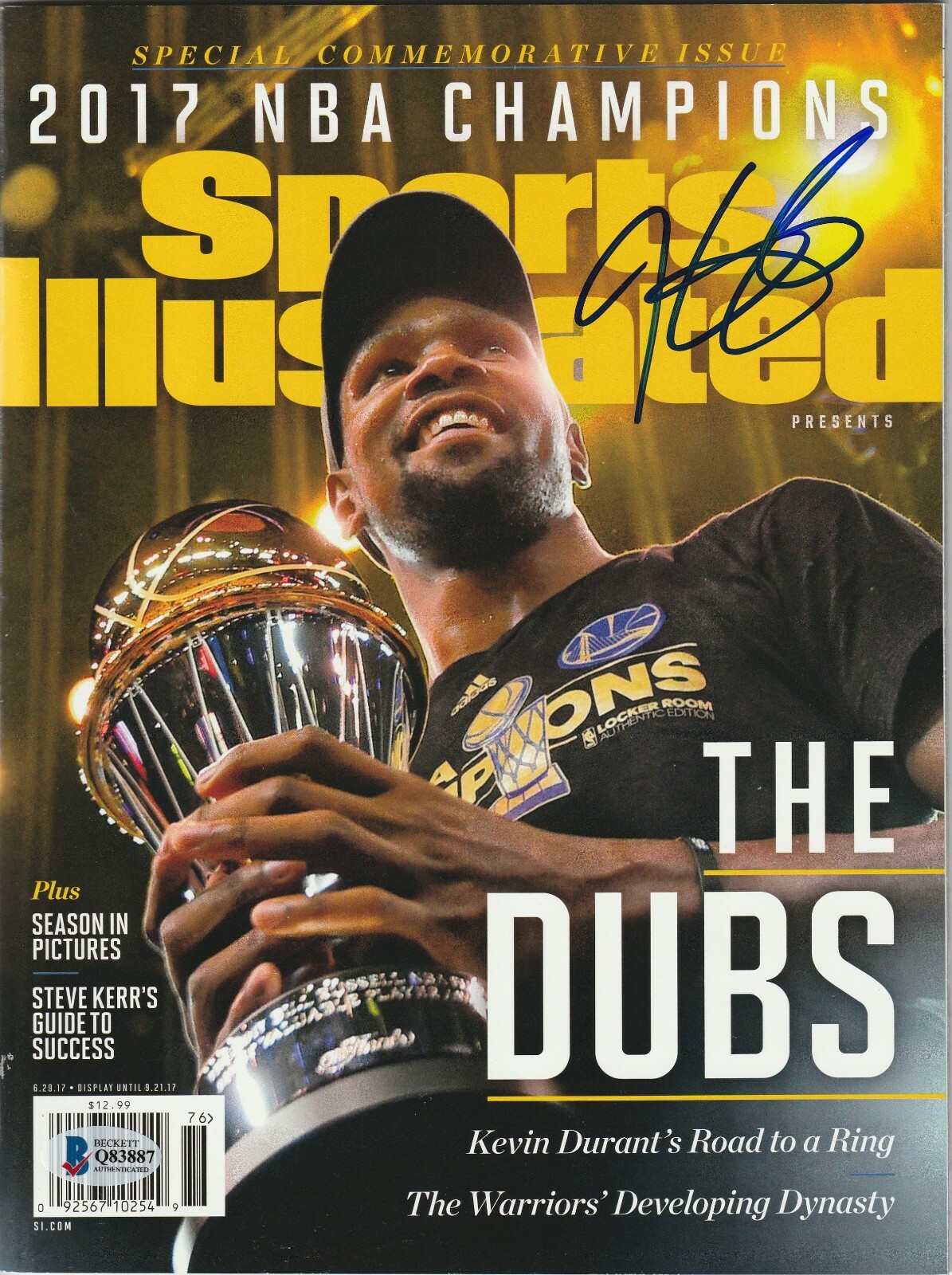 KEVIN DURANT SIGNED 9/21/17 SPORTS ILLUSTRATED W/ BECKETT COA (NO LABEL) COLLECTIBLE MEMORABILIA