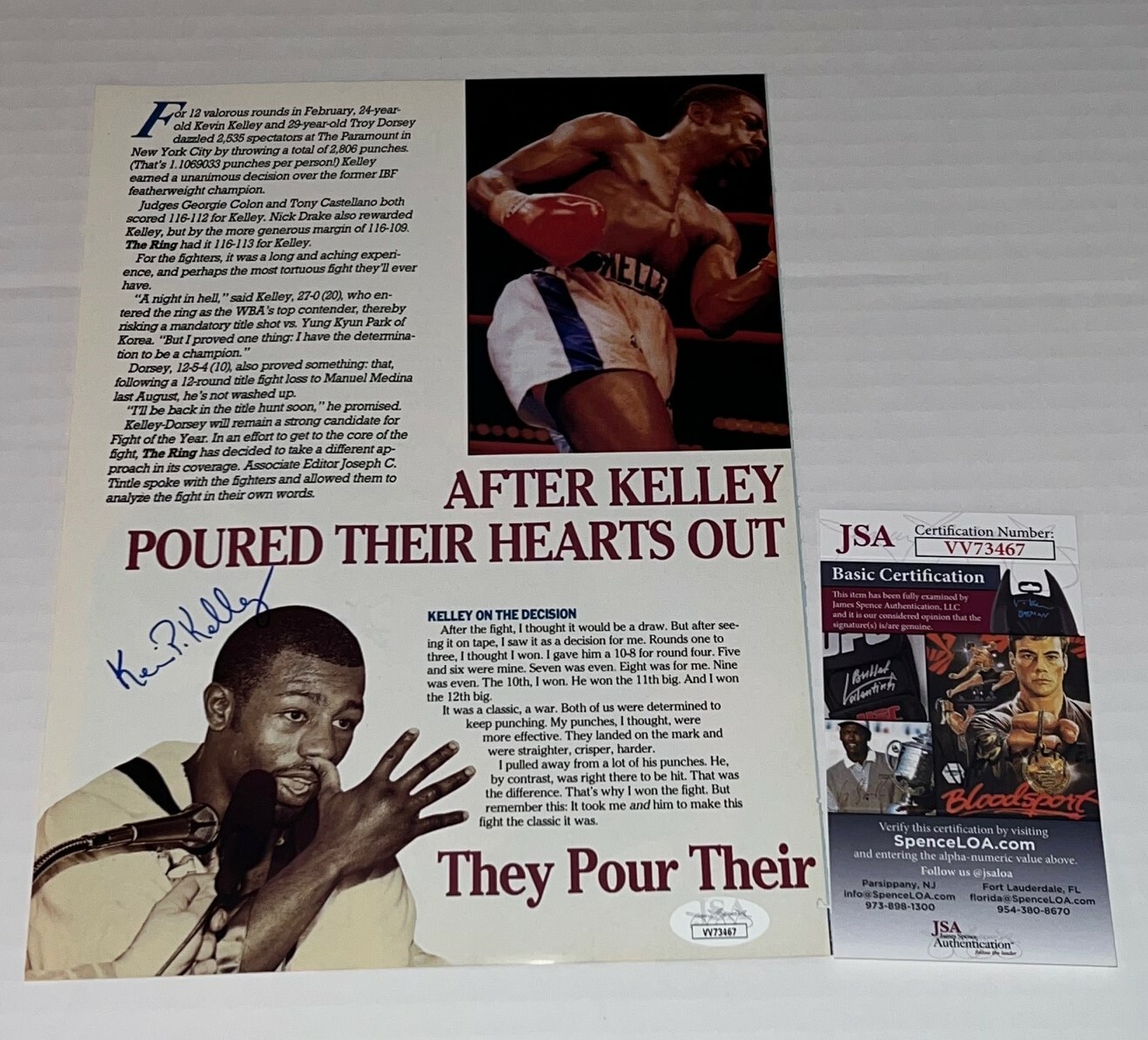 KEVIN KELLEY THE FLASH SIGNED MAGAZINE PAGE BOXING CHAMP AUTOGRAPHED JSA COLLECTIBLE MEMORABILIA