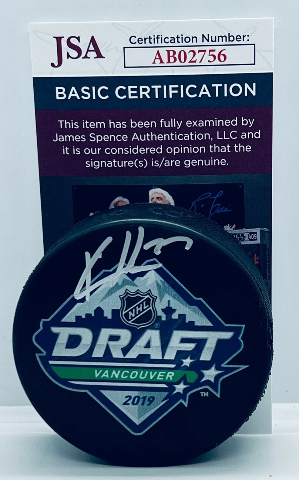 KIRBY DACH CHICAGO BLACKHAWKS SIGNED 2019 NHL DRAFT PUCK AUTOGRAPHED JSA COLLECTIBLE MEMORABILIA