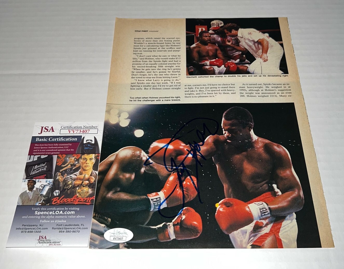 LARRY HOLMES HEAVYWEIGHT CHAMP SIGNED BOXING MAGAZINE PAGE AUTOGRAPHED 10 JSA COLLECTIBLE MEMORABILIA