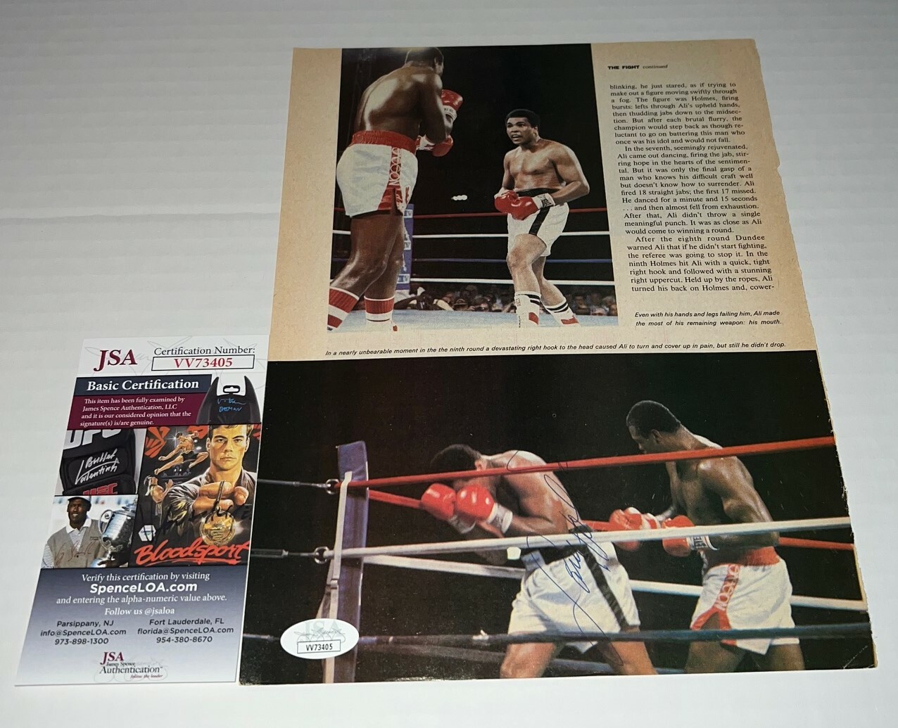 LARRY HOLMES HEAVYWEIGHT CHAMP SIGNED BOXING MAGAZINE PAGE AUTOGRAPHED 12 JSA COLLECTIBLE MEMORABILIA