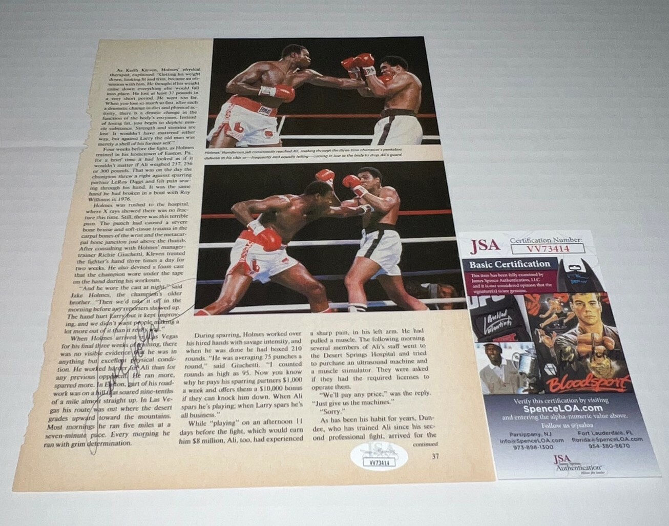 LARRY HOLMES HEAVYWEIGHT CHAMP SIGNED BOXING MAGAZINE PAGE AUTOGRAPHED 5 JSA COLLECTIBLE MEMORABILIA