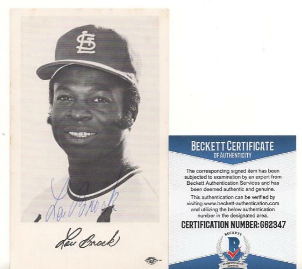 LOU BROCK ST. LOUIS CARDINALS SIGNED POST CARD BECKETT G62347 COLLECTIBLE MEMORABILIA