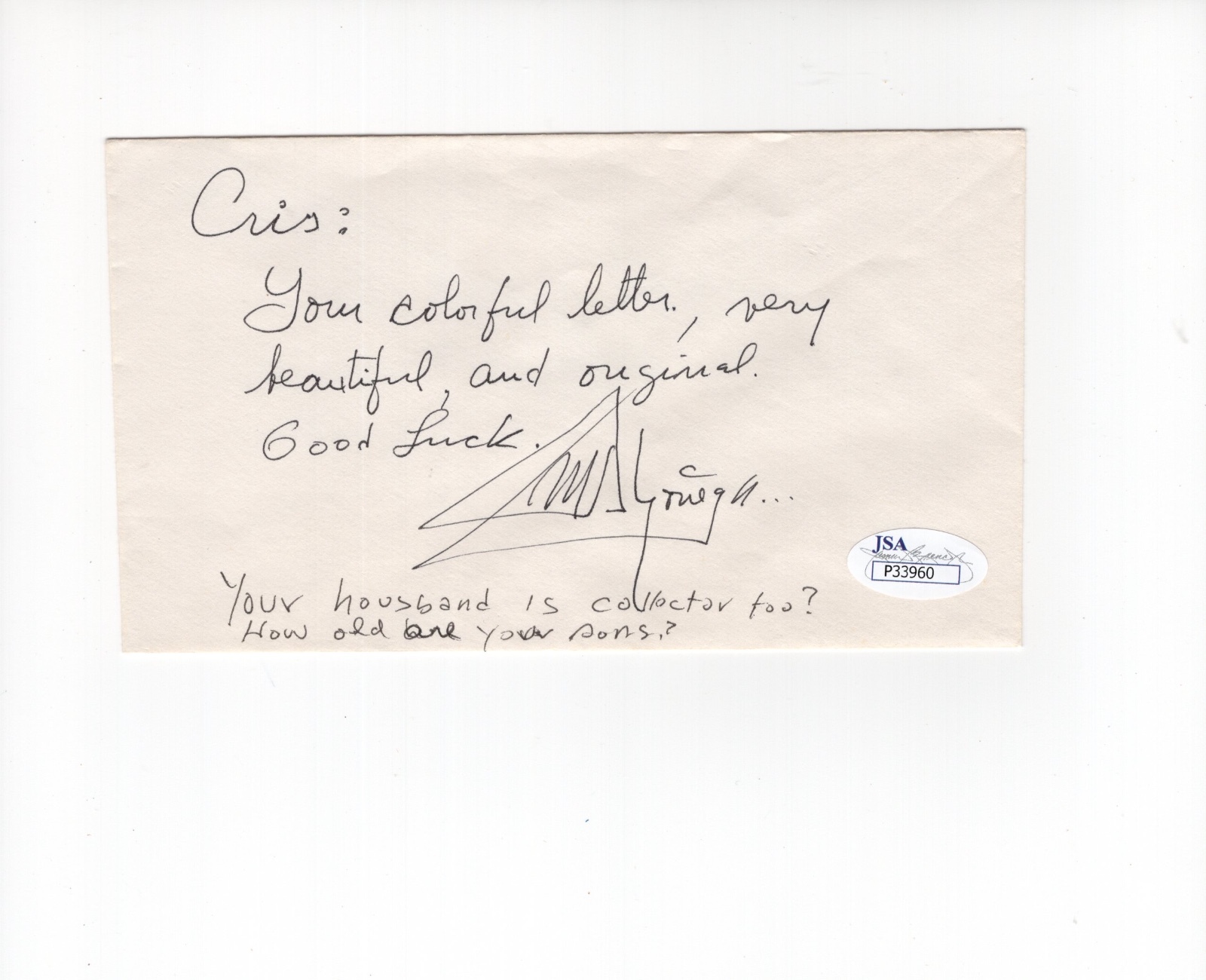 MANUEL NORIEGA HAND SIGNED+WRITTEN NOTE ON ENVELOPE AWESOME+RARE JSA COLLECTIBLE MEMORABILIA